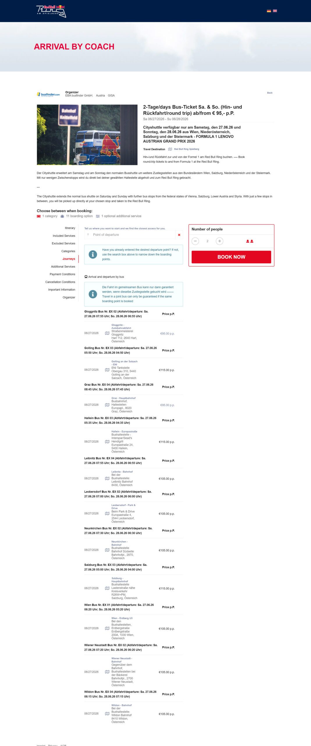 There are over 100 different bus pickup locations throughout the Styria, Carinthia and Salzberg regions. So if you live in Austria this is a great way to travel to and from the circuit.